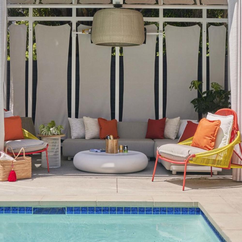 Spaces that put you in a vacation state of mind. Gather around the pool and under the palms in a private cabana — perfect for letting ideas, laughs and drinks flow.